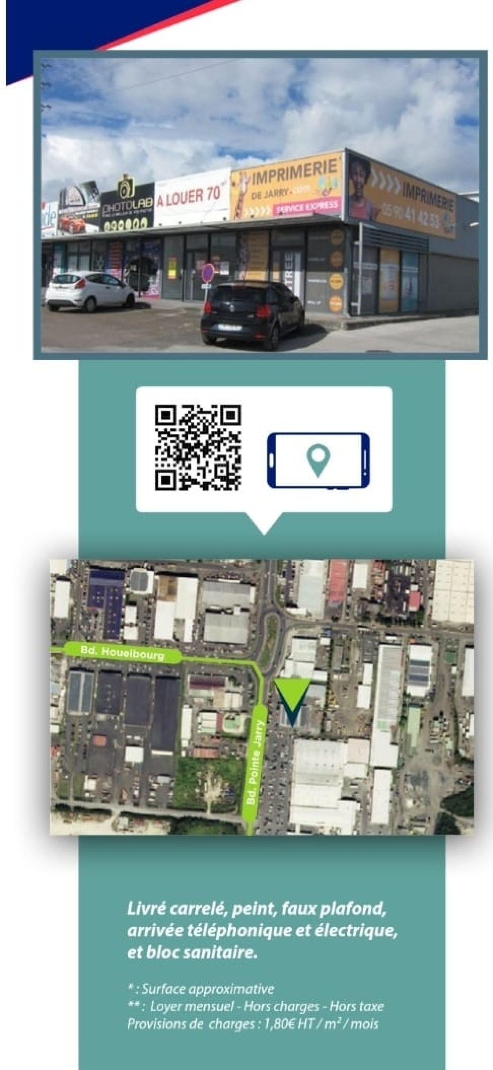Idéalement située voie principale 97122 surface de 133m².(avec mezzanine)