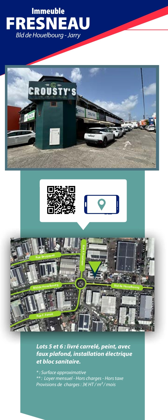 Ce local est livré carrelé faux plafond, cloisonnement, peinture, installation électrique, avec bloc sanitaire.
