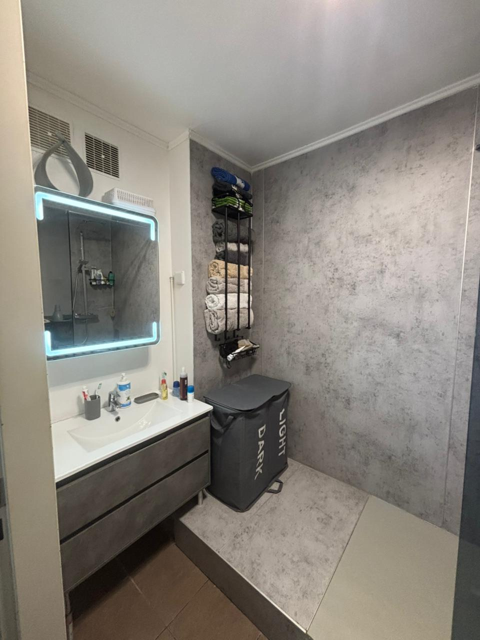 ce studio climatisé entierement équipé se compose d'une salle d'eau avec wc ,