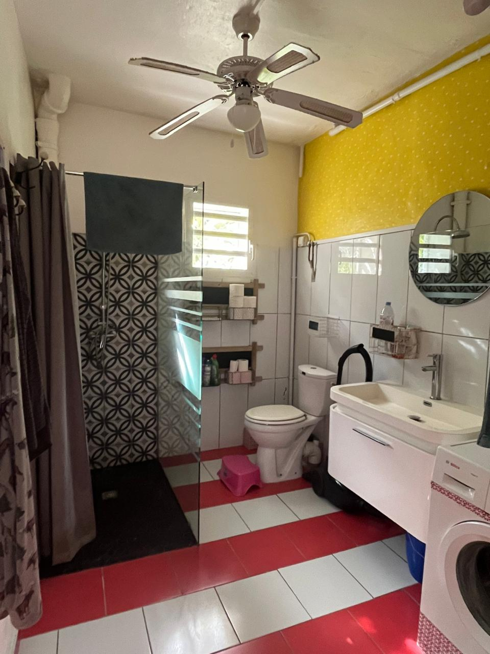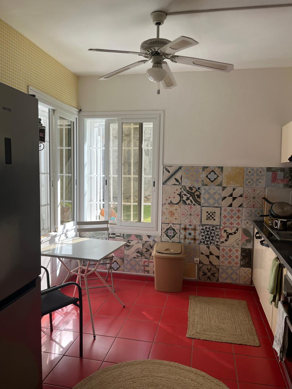 Il est composé d'un jardin, entièrement sécurisé et cloturé, d'une terrasse, d'une véranda sécurisée, d'une cuisine meublée et équipée, qui donne sur le jardin.