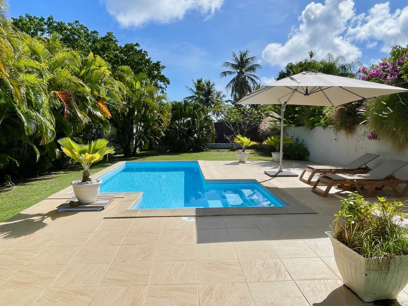 Charmante villa F4 de 140 m2 (terrasse comprise) meublée et entièrement équipée proche du collège et des plages, dans un quartier sécurisé et résidentiel. Composée de 3 chambres climatisées, 1 salon, 2 salles d'eau/WC, 1 cuisine équipée avec cellier, large terrasse couverte prolongée d'un jardin tropical clos d'env. 700 m2 et d'une piscine, 1 cabanon, 1 barbecue, citerne bac tampon avec filtres et 3 places de parking. Disponible le 01/04/2026. Loyer : 2600€ tout compris avec les consommations d'eau, d'électricité, les entretiens de climatiseurs, les entretiens jardin et piscine tout est pris en charge pour vous. Pour plus d’informations contacter Laurence CAILLET par WHATSAPP et SMS au +590 690 002 312 ou par SMS au 0690 35 97 18 et par mail : laurence@immo971.com et/ou cailletlo971@gmail.com en laissant vos coordonnées et l'objet de votre appel.