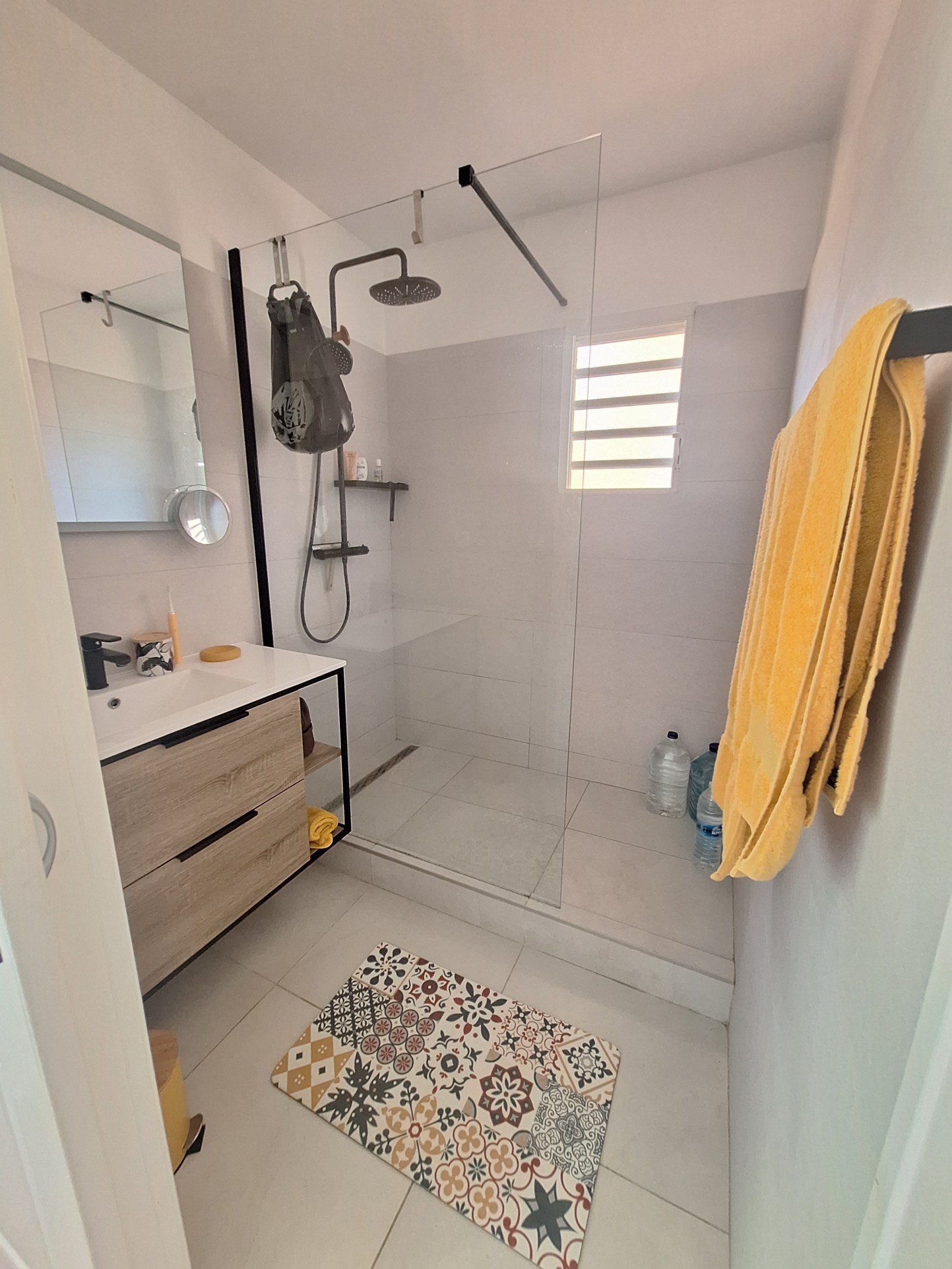 L’appartement se compose d’un séjour lumineux ouvrant sur une terrasse et un jardin privatif exposés au soleil, d’une cuisine moderne ouverte, d’une chambre spacieuse, d’une salle de bain et de toilettes séparées.