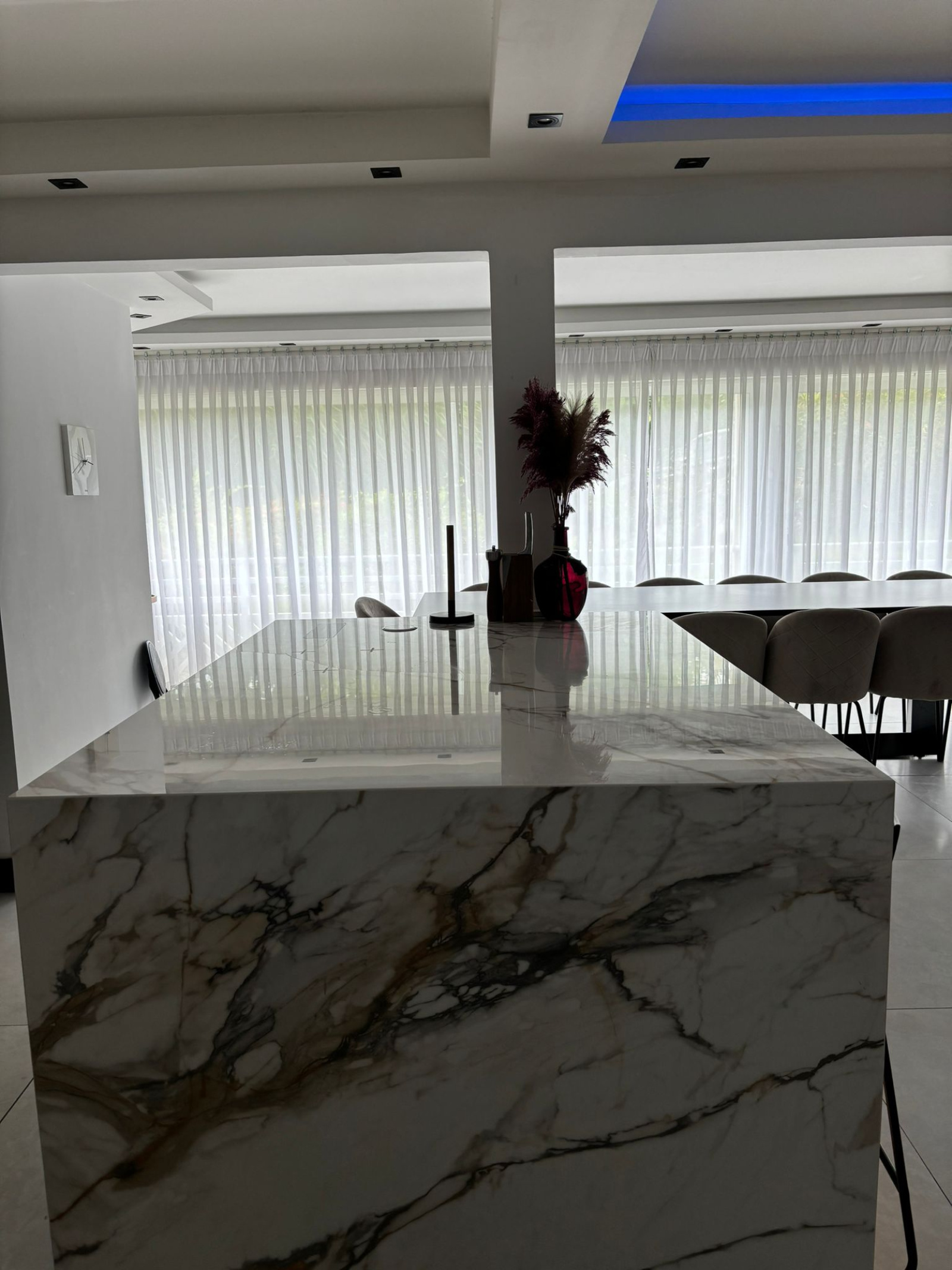 Il se compose d'une entrée, d'une grande cuisine ouverte entiérement équipée, d'une salle à manger, d'un séjour , de deux chambres, d'une salle de bain avec WC, d'une buanderie avec citerne.
