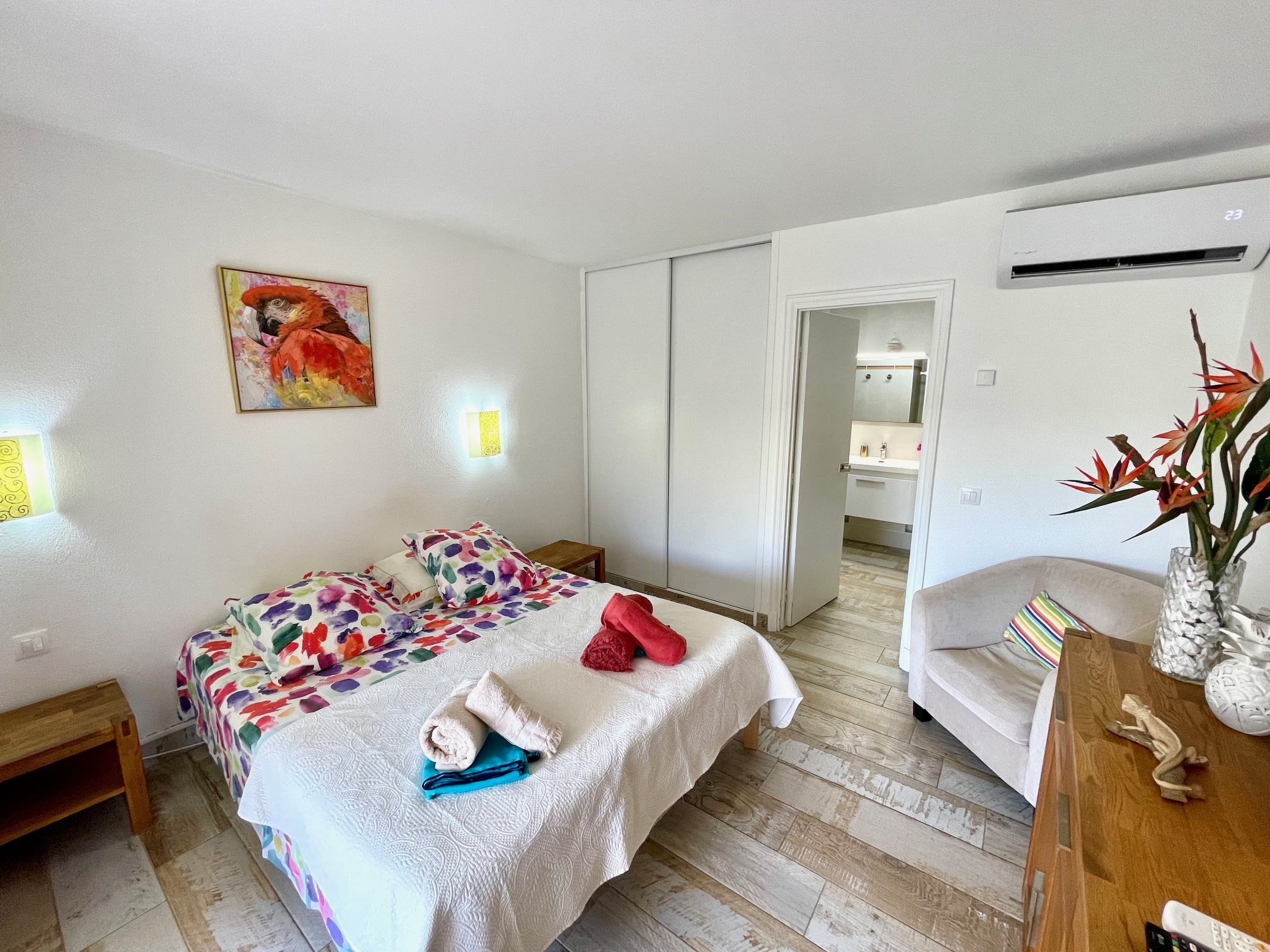 LA MARINA : Appartement duplex meublé de 56 m2 (terrasse comprise) au coeur de la Marina dans une résidence sécursisée avec une grande piscine, proche du golf, des plages, des commerces et et restaurants. Composé d'une entrée avec placard, 1 salon climatisé, 1 belle cuisine équipée sur terrasse fermée par volet roulant, 1 salle d'eau/WC ; à l'étage 1 chambre volumineuse climatisée. Vous pouvez contacter Laurence CAILLET au 0690 35 97 18 par SMS et sur WhatsApp au +590 690 35 97 18, par mail : laurence@immo971.com ou cailletlo971@gmail.com en laissant vos coordonnées et l'objet de votre appel.