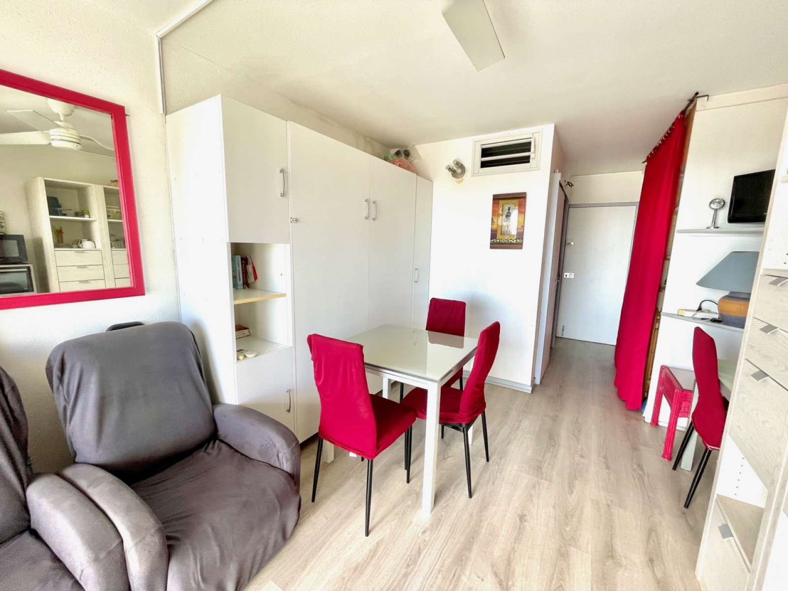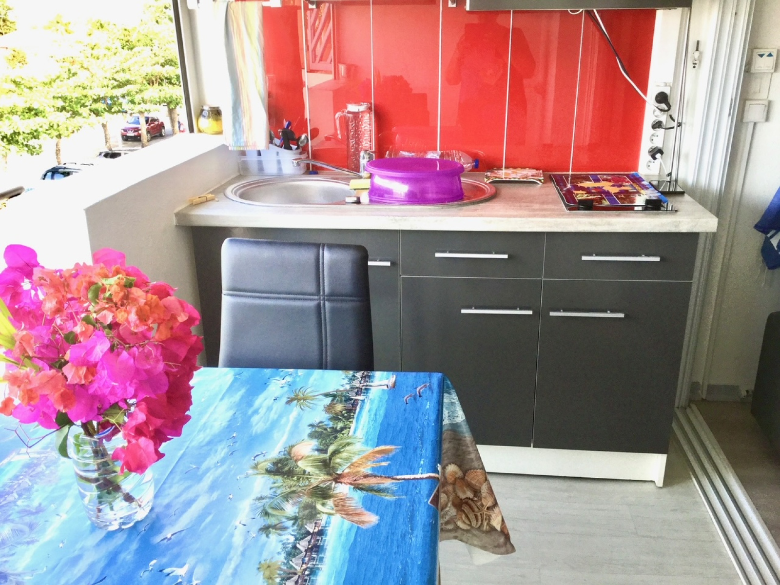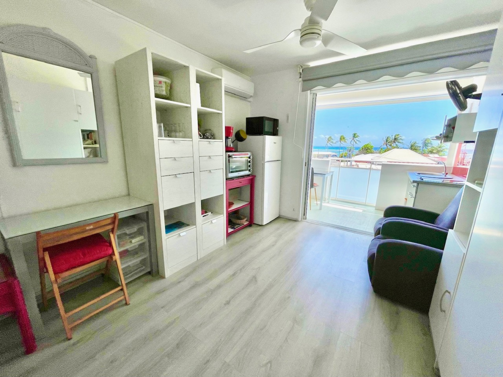 LA MARINA : Studio VUE MER meublé de 23,75 m2 (terrasse incluse), au second et dernier étage, résidence avec ascenseur au coeur de la Marina, à 100 m de la plage. Accessible à pied : commerces, restaurants, golf, boulangerie, médecin, pharmacie, gare maritime, etc... Composé d'une entrée avec placard, 1 salle d'eau/WC/lave-linge, 1 salon/chambre climatisée, 1 terrasse fermée par volet roulant électrique avec kitchenette équipée. Charges de copropriété faibles eau incluse, toitures et gouttières refaites. Vous pouvez contacter Laurence CAILLET au 0690 35 97 18 par SMS et sur WhatsApp au +590 690 35 97 18, par mail : laurence@immo971.com ou cailletlo971@gmail.com en laissant vos coordonnées et l'objet de votre appel.
