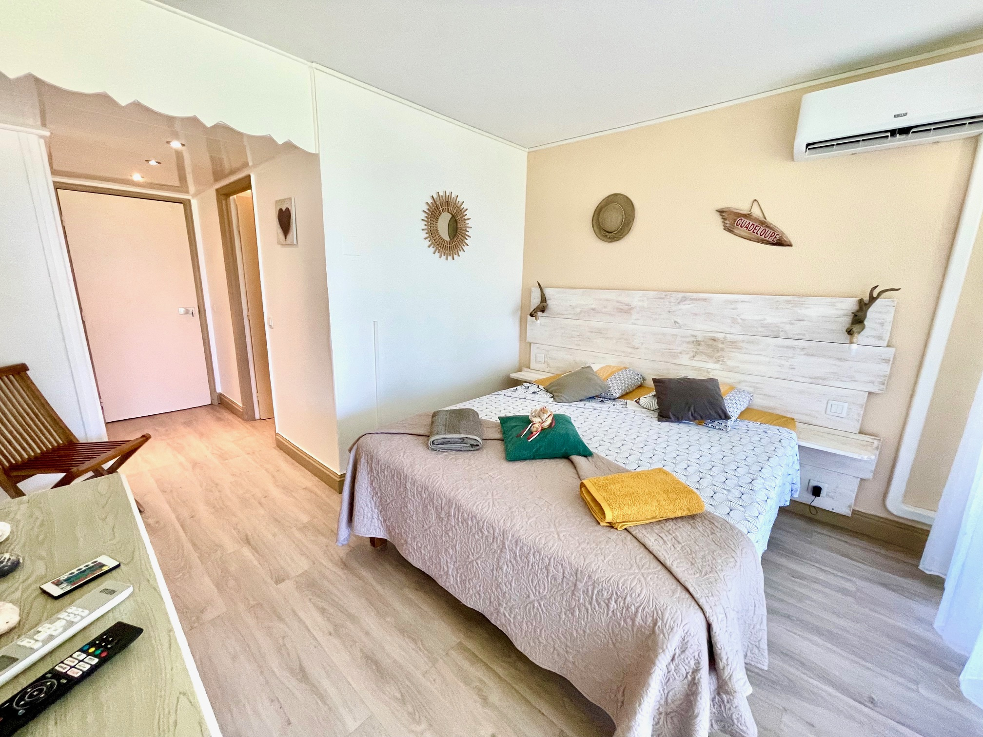 ANSE DES ROCHERS AVEC VUE DEGAGEE : T2 meublé en RDC de 29 m2 (terrasse comprise) avec accès direct plage, piscine, tennis. La résidence est sécurisée avec parking, gardien et restaurant. Studio rénové composé d'une entrée avec placard, 1 salle d'eau/WC/Lave-Linge, 1 belle chambre climatisée, 1 grande cuisine équipée avec coin repas sur la terrasse et vue dégagéee. Pour plus d’informations contacter Laurence CAILLET par WHATSAPP et SMS au +590 690 002 312 ou par SMS au 0690 35 97 18 et par mail : laurence@immo971.com et/ou cailletlo971@gmail.com en laissant vos coordonnées et l'objet de votre appel.