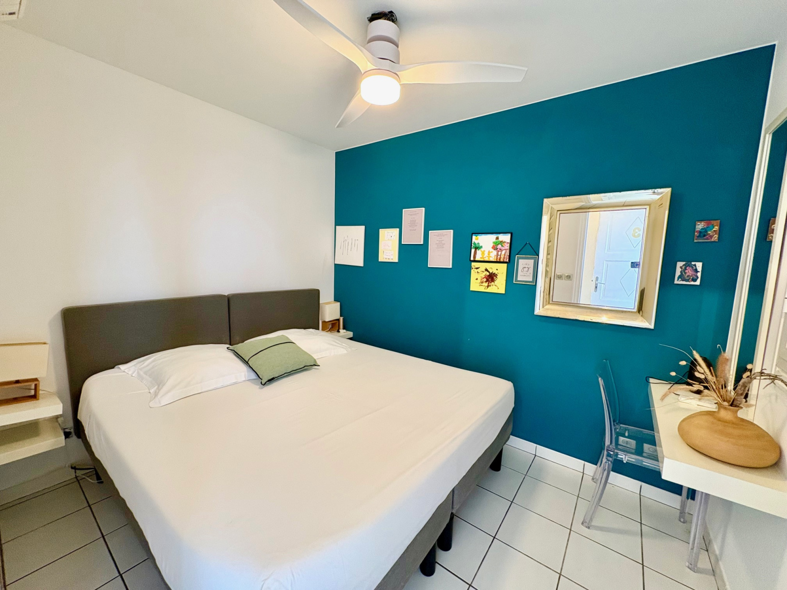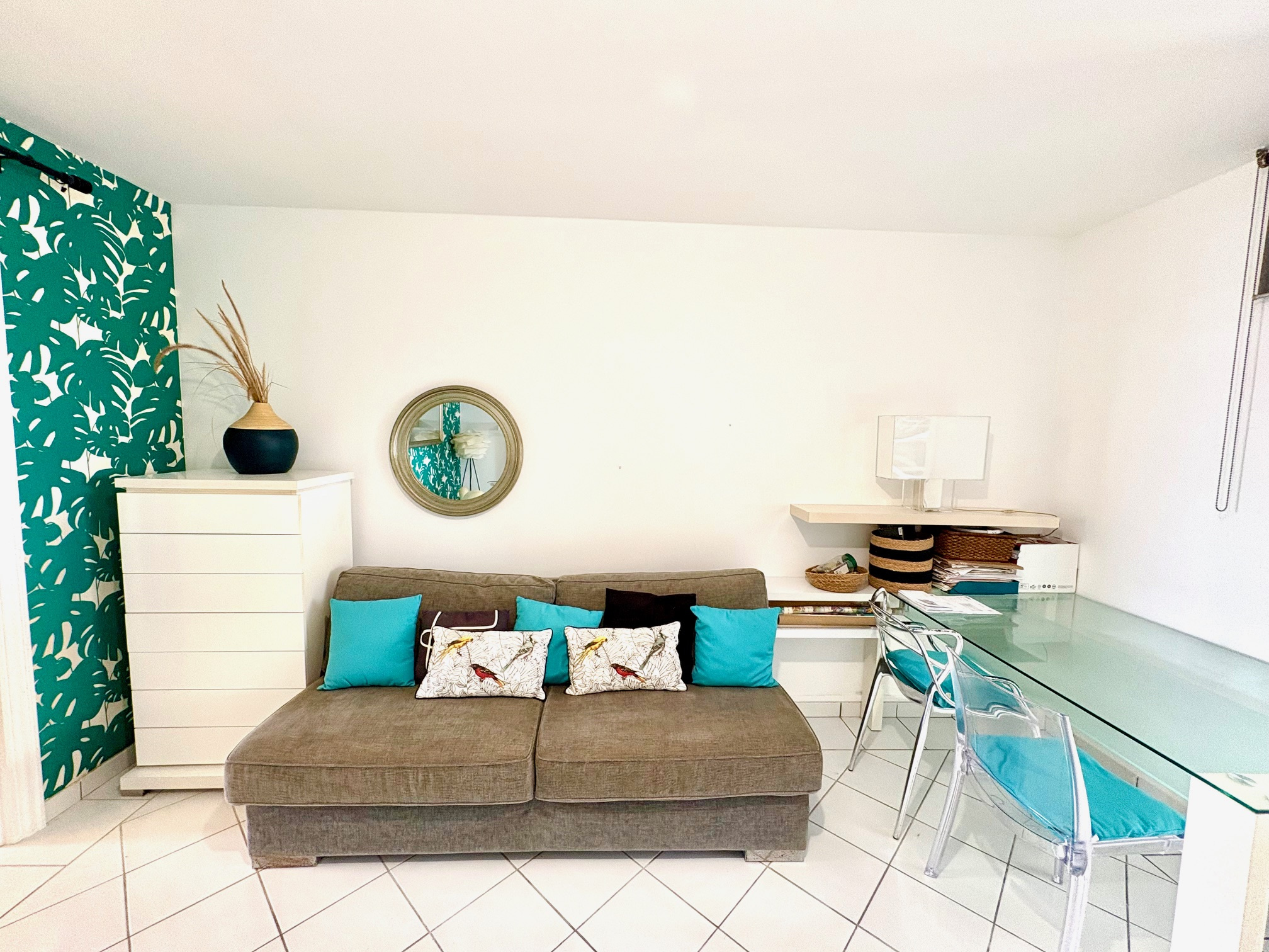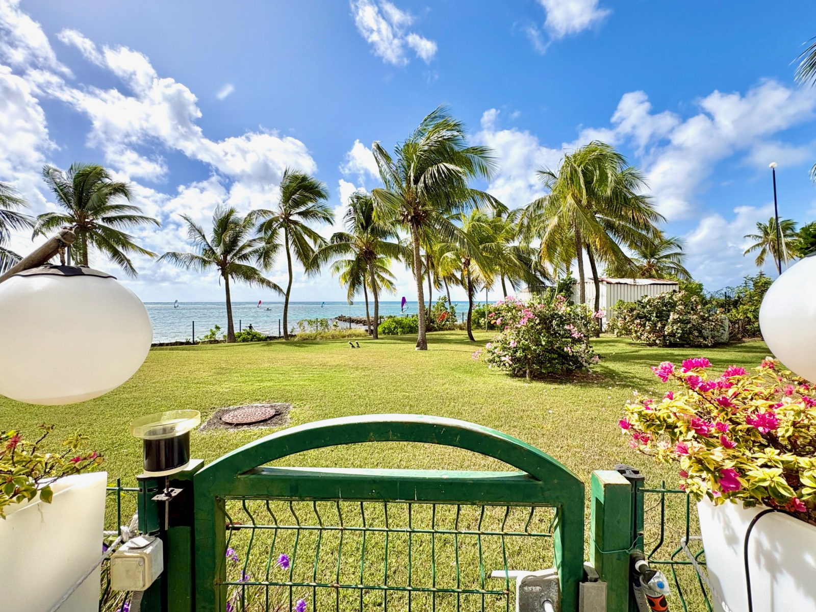 LA MARINA : VOITURE OFFERTE avec la vente du T2 VUE MER rez de jardin de 57 m2 (terrasse incluse), prestations haut de gamme contemporaines, entièrement repeint, vendu meublé, équipé, état neuf, clef en main.Composé de 1 entrée avec placard, 1 chambre climatisée, 1 salle d'eau italienne, 1 WC, 1 salon prolongé de 1 grande cuisine américaine équipée au désign ultra moderne, 1 terrasse bénéficiant de 1 pleine vue mer prolongée de 1 charmant jardin fleuri et éclairé toute la nuit avec lampes solaires. L'accès est direct pour rejoindre la plage. Rés. avec parking, borne de rechargement privative pour véhicule électrique. Les Plus : Citerne 300 L ext., fibre, moustiquaire sur chaque ouverture, home cinéma,... Commerces, restaurants, golf, gare maritime,... sont accessibles à pied. Pour plus d’informations contacter Laurence CAILLET par WHATSAPP et SMS au +590 690 002 312 ou par SMS au 0690 35 97 18 et par mail : laurence@immo971.com et/ou cailletlo971@gmail.com en laissant vos coordonnées et l'objet de votre appel.