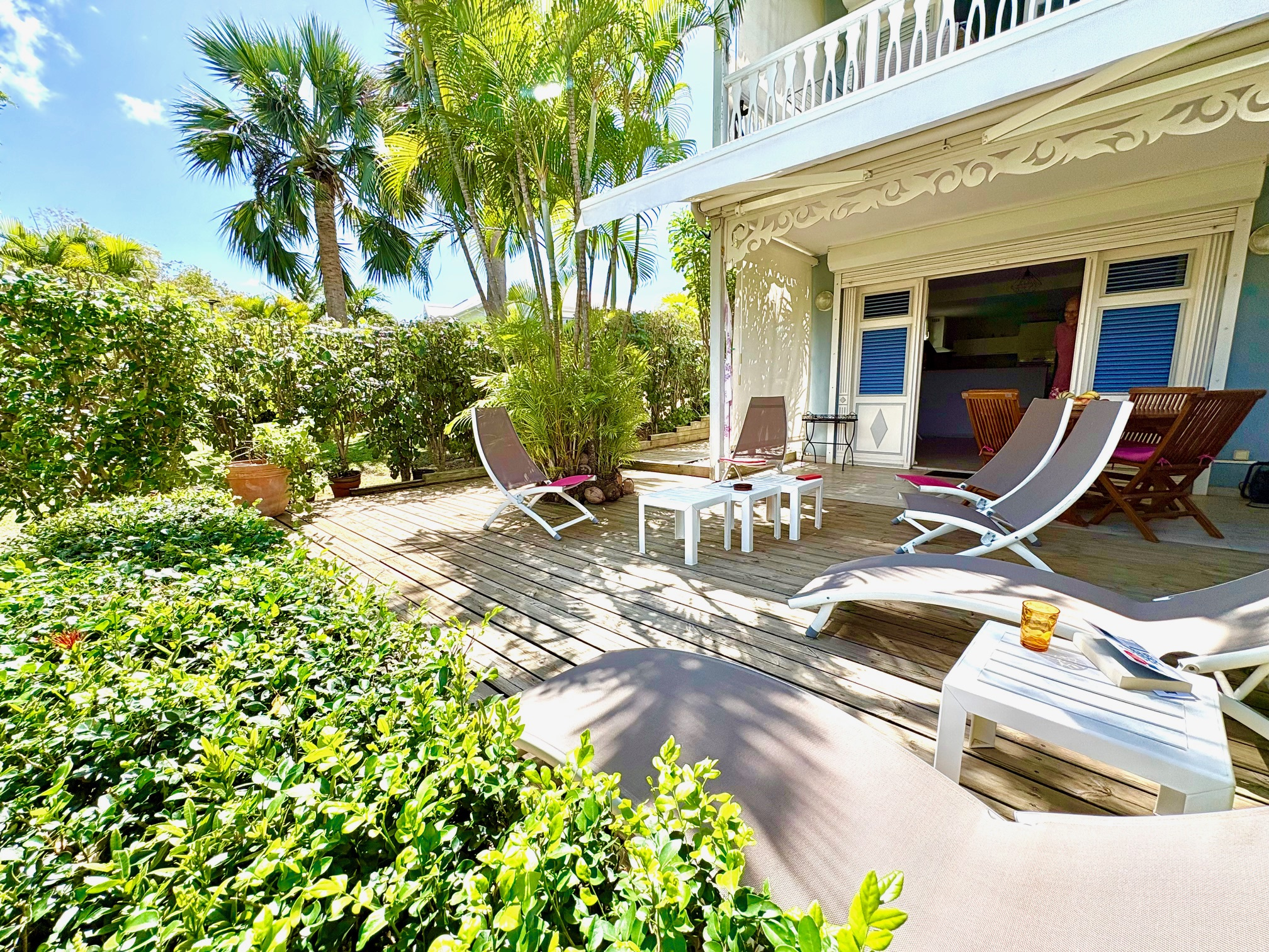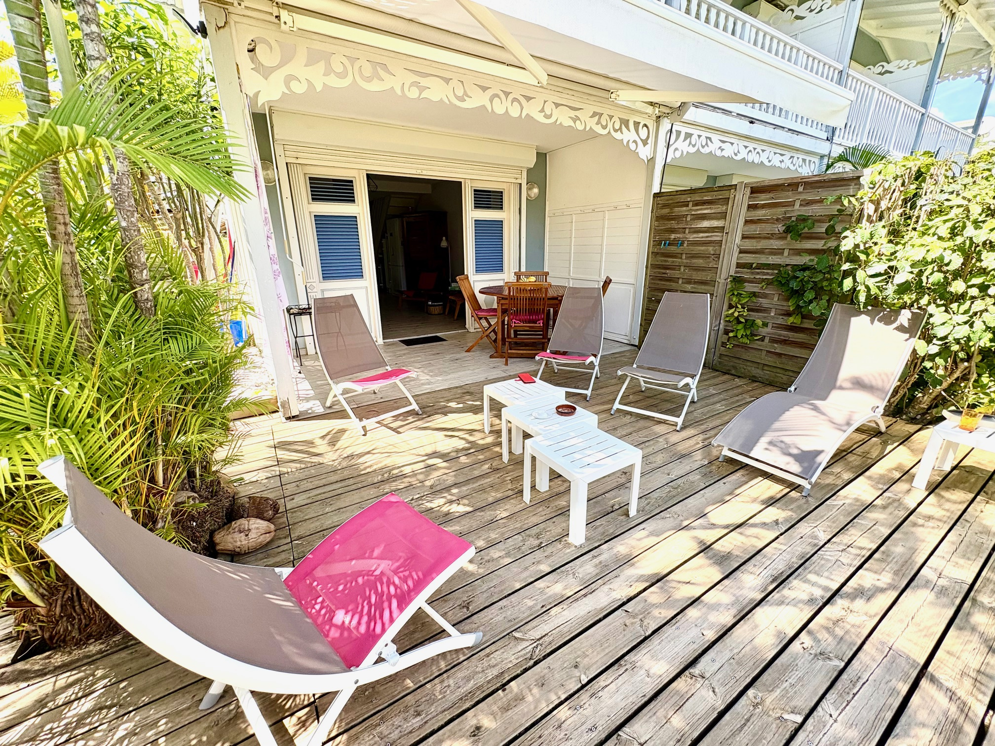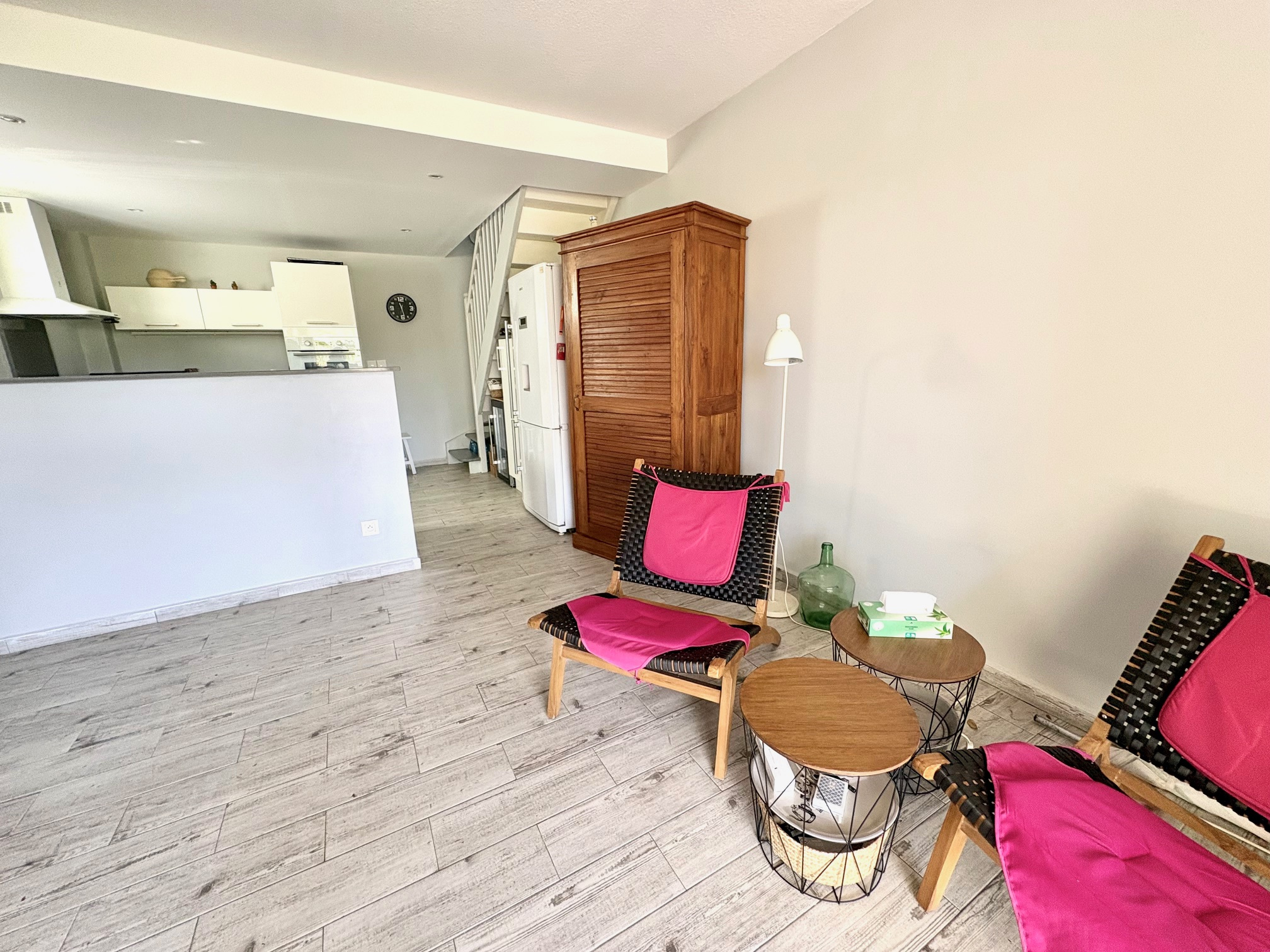 Magnifique appartement T2/3 duplex de 60 m2 env., bénéficiant d'une très jolie vue sur le golf, proche de la Marina et des commerces. Composé d'une entrée avec placard, 1 pièce climatisée pouvant servir de seconde chambre et bureau, 1 belle chambre climatisée équipée de grands placards prolongée d'une terrasse vue sur le golf, 1 salle d'eau, 1 WC séparé ; au RDC 1 salon climatisé avec 1 grande cuisine américaine contemporaine, 1 magnifique terrasse prolongée d'un grand deck entouré de végétations. Stationnement privé numéroté. Pour plus d’informations contacter Laurence CAILLET par WHATSAPP et SMS au +590 690 002 312 ou par SMS au 0690 35 97 18 et par mail : laurence@immo971.com et/ou cailletlo971@gmail.com en laissant vos coordonnées et l'objet de votre appel.