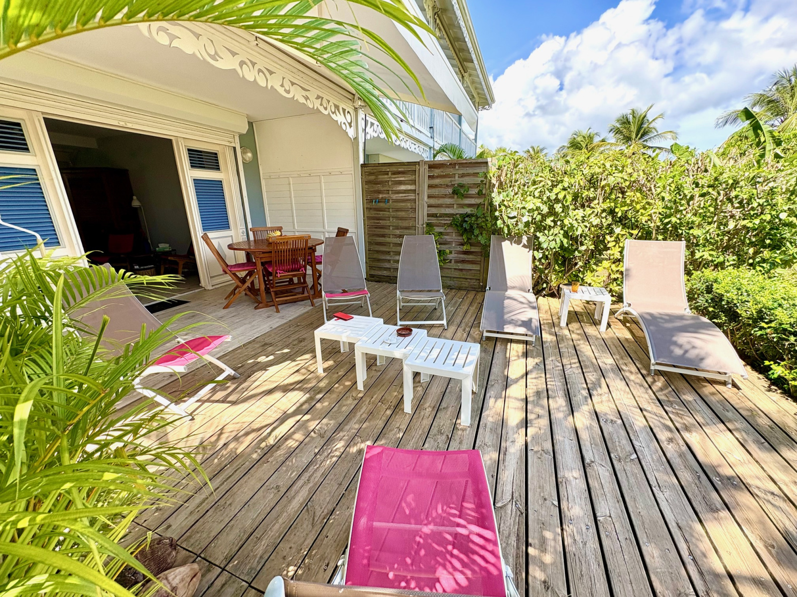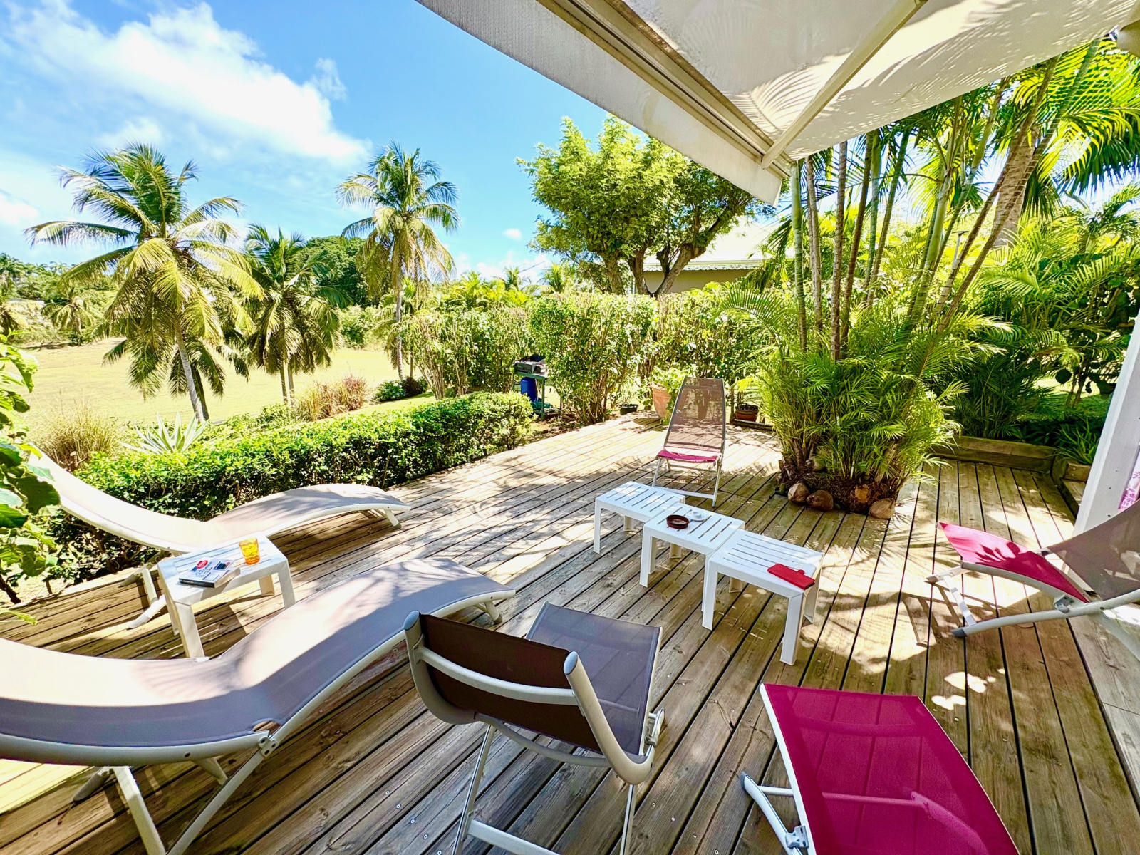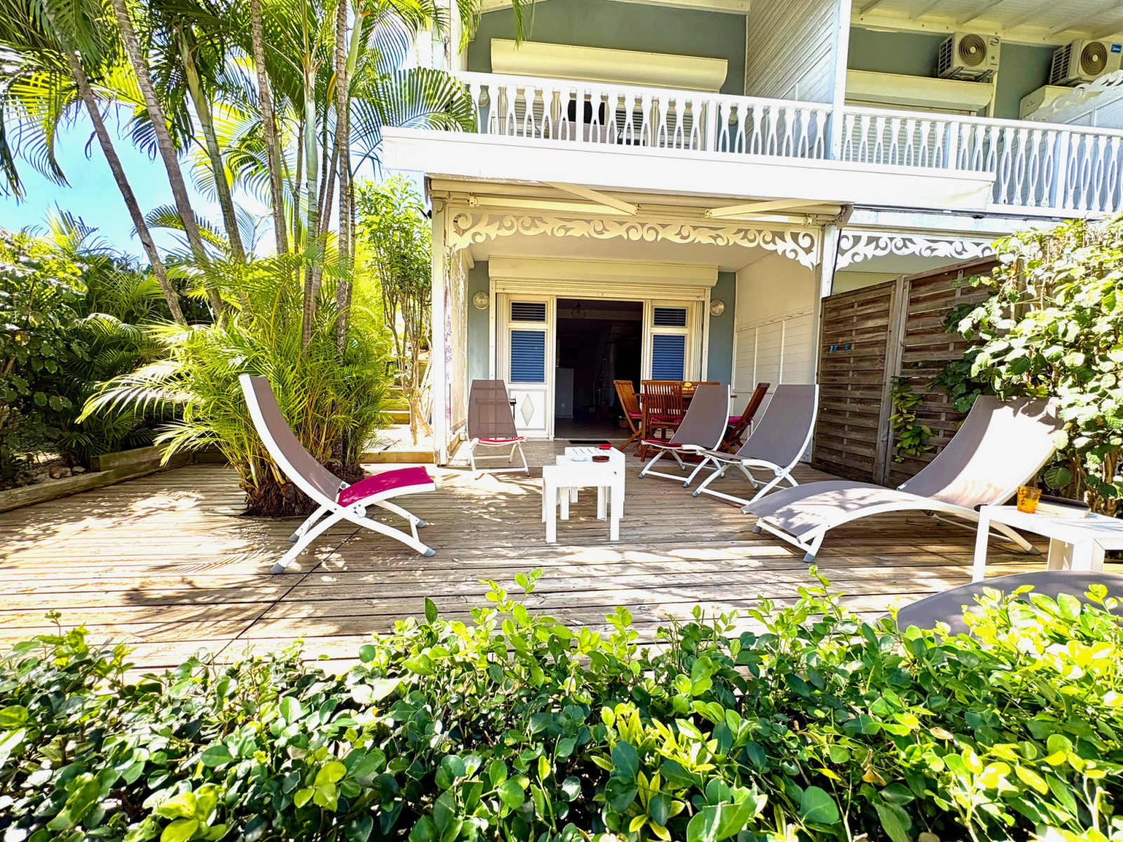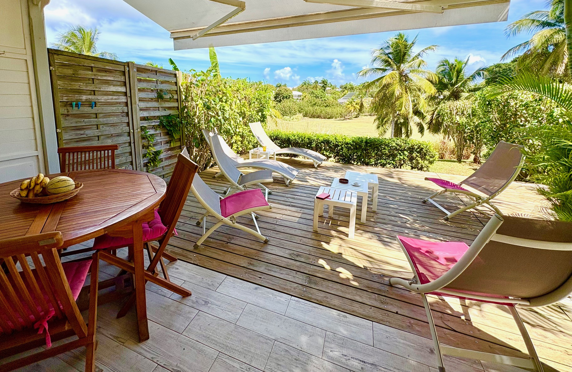 Magnifique appartement T2/3 duplex de 60 m2 env., bénéficiant d'une très jolie vue sur le golf, proche de la Marina et des commerces. Composé d'une entrée avec placard, 1 pièce climatisée pouvant servir de seconde chambre et bureau, 1 belle chambre climatisée équipée de grands placards prolongée d'une terrasse vue sur le golf, 1 salle d'eau, 1 WC séparé ; au RDC 1 salon climatisé avec 1 grande cuisine américaine contemporaine, 1 magnifique terrasse prolongée d'un grand deck entouré de végétations. Stationnement privé numéroté. Pour plus d’informations contacter Laurence CAILLET par WHATSAPP et SMS au +590 690 002 312 ou par SMS au 0690 35 97 18 et par mail : laurence@immo971.com et/ou cailletlo971@gmail.com en laissant vos coordonnées et l'objet de votre appel.