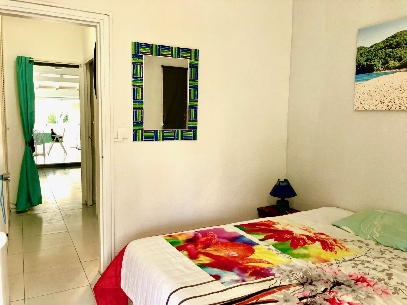 LA MARINA - Appartement T2 de 43m2 traversant (terrasse incluse) meublé en rez de jardin dans une résidence sécurisée avec piscines, proche de toutes les commodités et sont accessibles à pied : Super U, boulangeries, restaurants, golf, médecins, pharmacies, boutiques, plages. Composé d'une grande cuisine US équipée sur une belle terrasse prolongée par un deck, un salon climatisé pouvant servir de chambre secondaire, 1 couloir avec nombreux rangements, 1 chambre climatisée, 1 salle d'eau et 1 WC séparé. L'appartement est en bon état. Pour plus d’informations contacter Laurence CAILLET par WHATSAPP et SMS au +590 690 002 312 ou par SMS au 0690 35 97 18 et par mail : laurence@immo971.com et/ou cailletlo971@gmail.com en laissant vos coordonnées et l'objet de votre appel.
