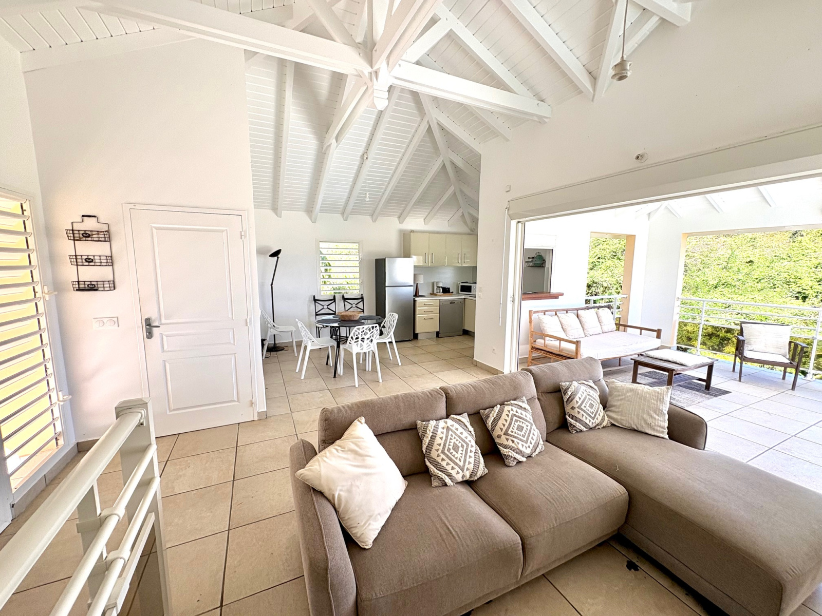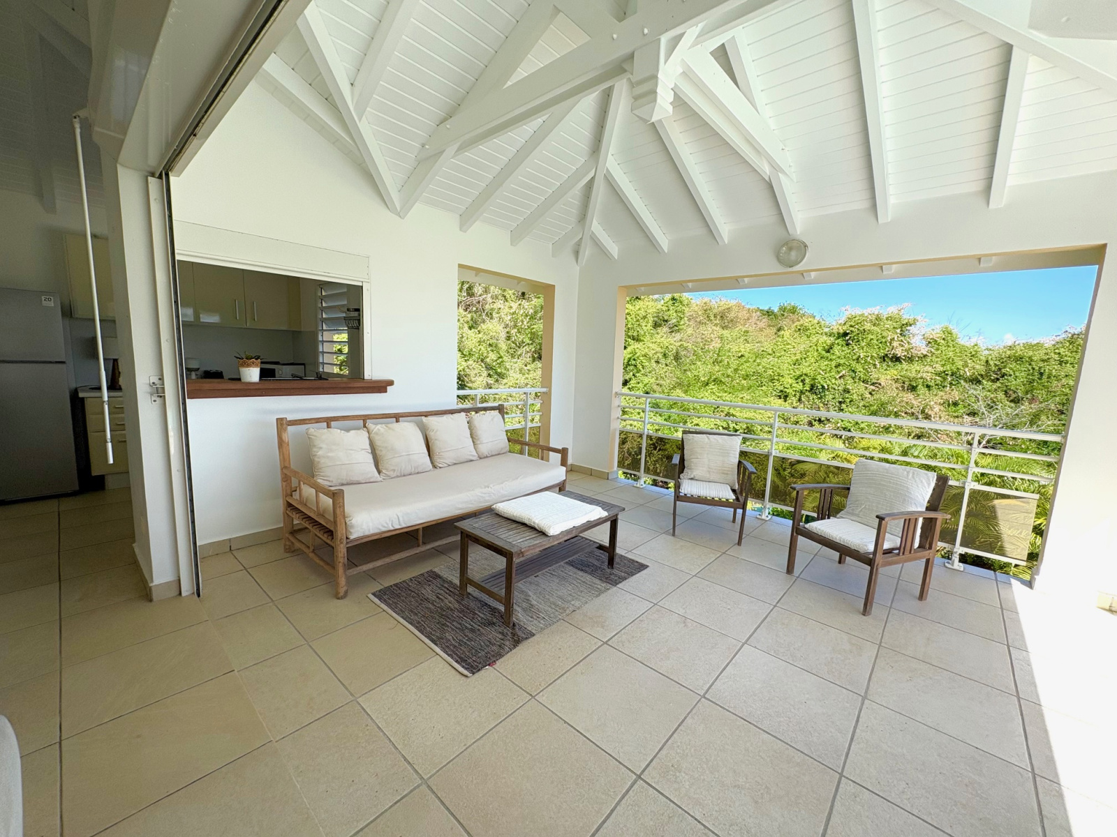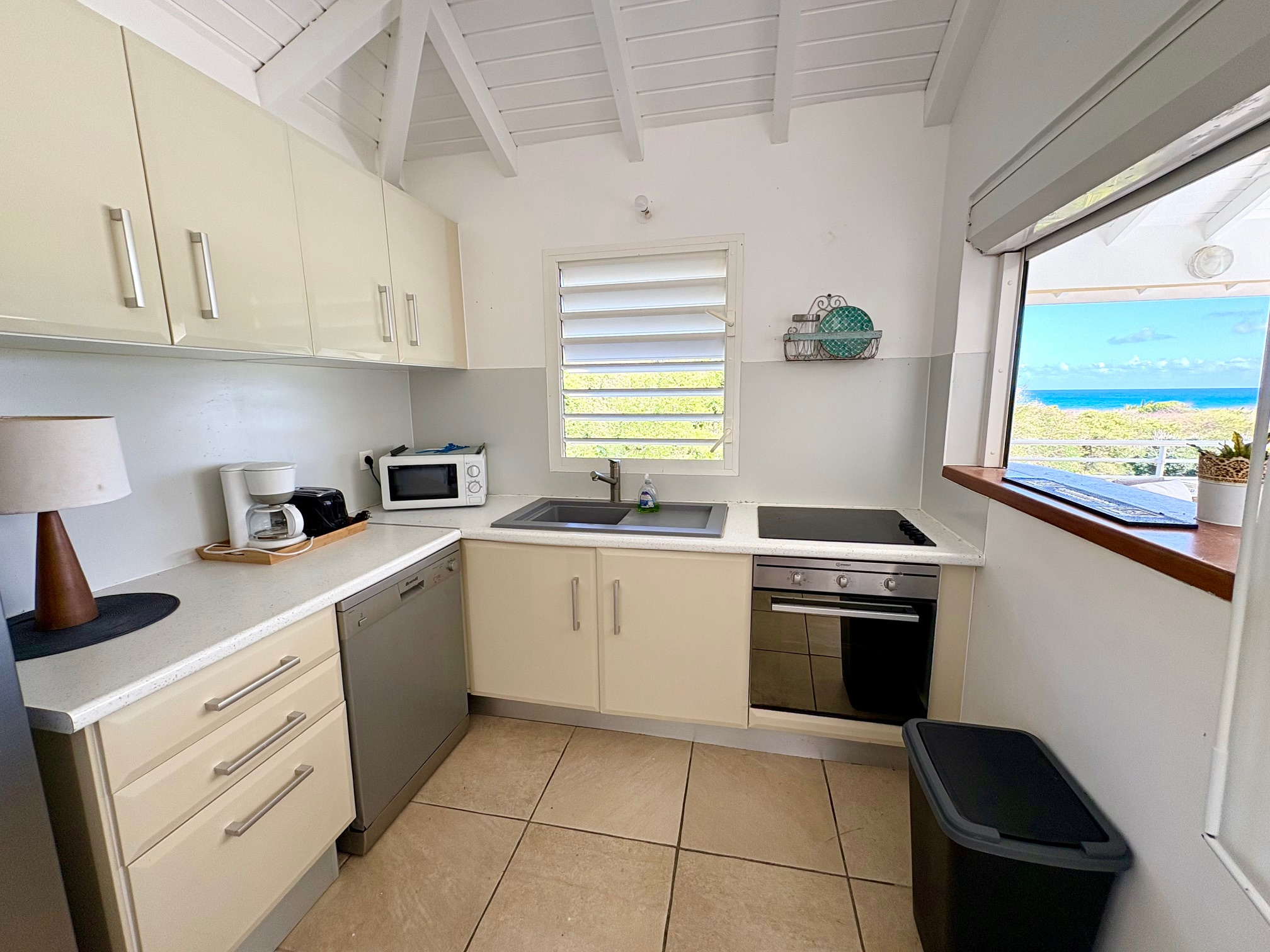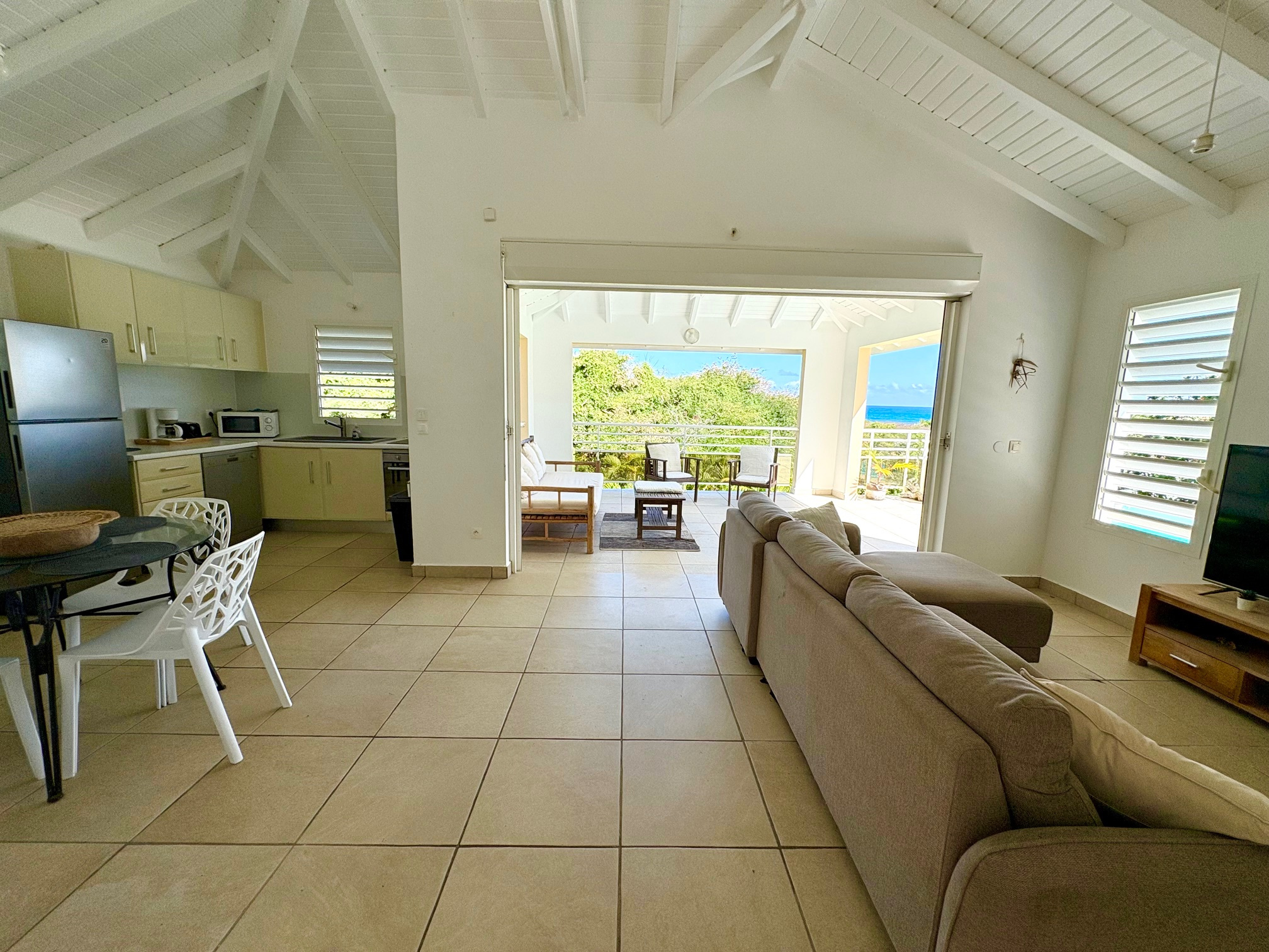 PLEINE VUE MER depuis le salon, la terrasse et la piscine de la villa duplex contemporaine de type F3 de 123 m2 (terrasses comprises) située dans un quartier très recherché et résidentiel proche de la plage accessible à pied. Composée à l'étage d'un vaste salon avec charpente cathédrale, 1 cuisine US équipée avec passe-plat vers la terrasse, 1 salle d'eau/WC "PMR", 1 terrasse avec vue degagée et vue mer prolongée par 1 plage carrelée et la piscine. Au niveau R-1,un large dégagement dessert les 2 belles chambres climatisées donnant chacune sur 1 galerie ombragée en rez de jardin, 1 salle d'eau, 1 grand WC séparé. Un local technique piscine complété d'un coin buanderie permet de stocker les objets encombrants. Le jardin est clos 670m2 env avec végétation tropicale. Citerne tampon. Parking 2 places mini. Pour plus d’informations contacter Laurence CAILLET par WHATSAPP et SMS au +590 690 002 312 ou par SMS au 0690 35 97 18 et par mail : laurence@immo971.com et/ou cailletlo971@gmail.com en laissant vos coordonnées et l'objet de votre appel.