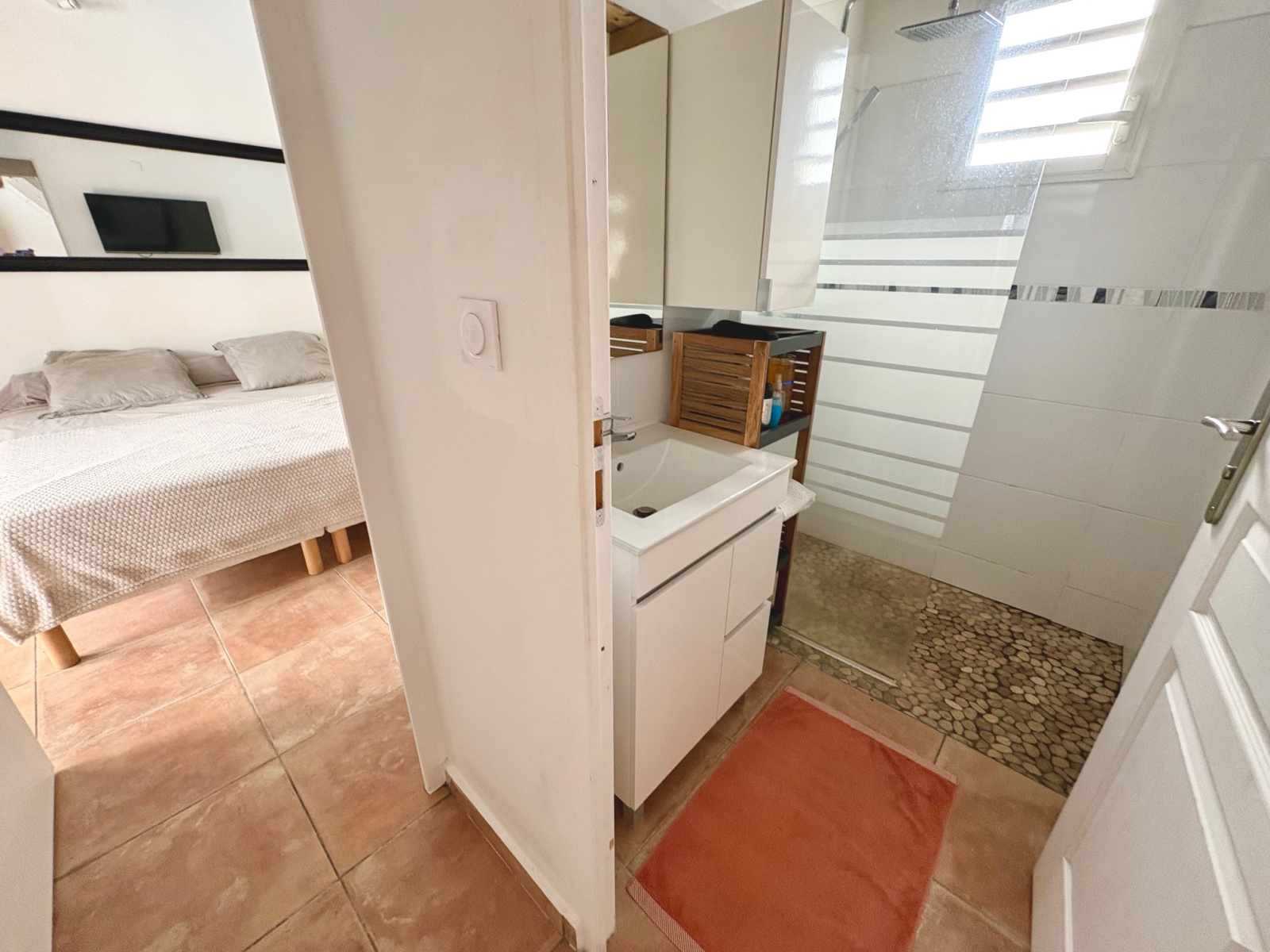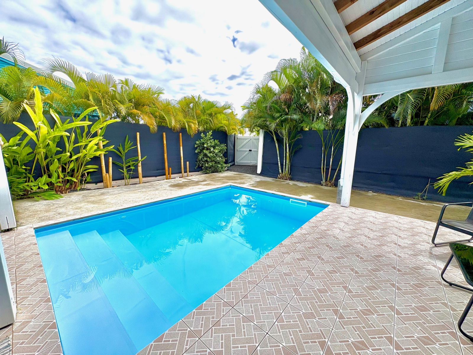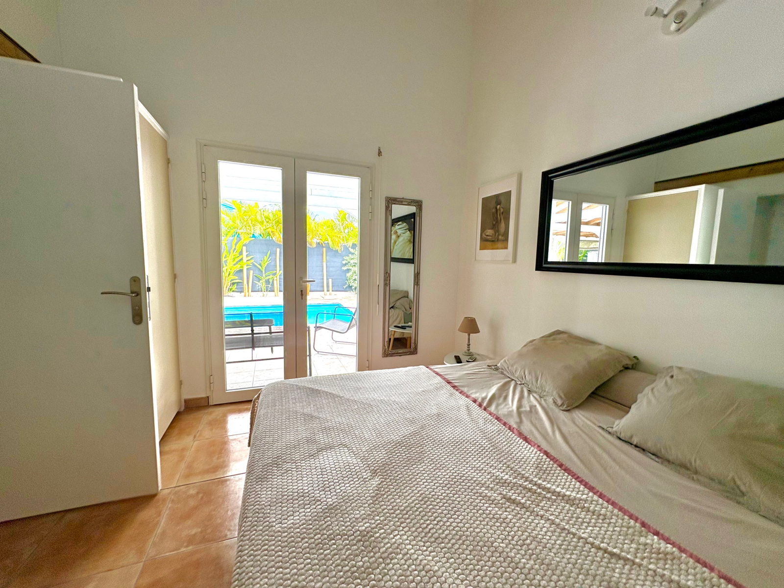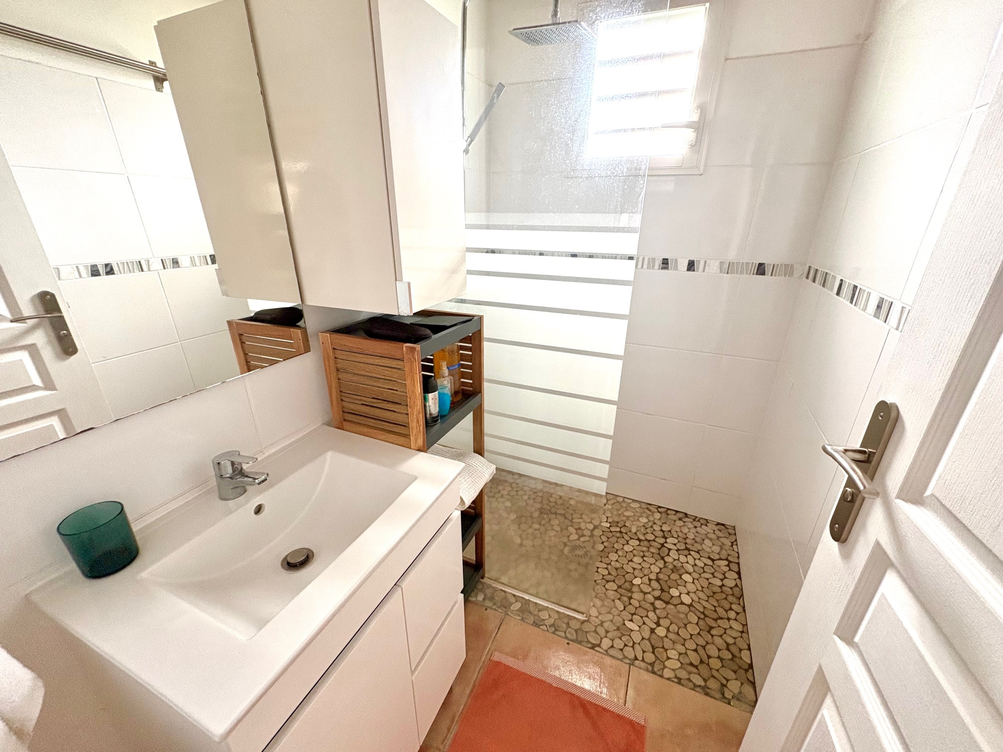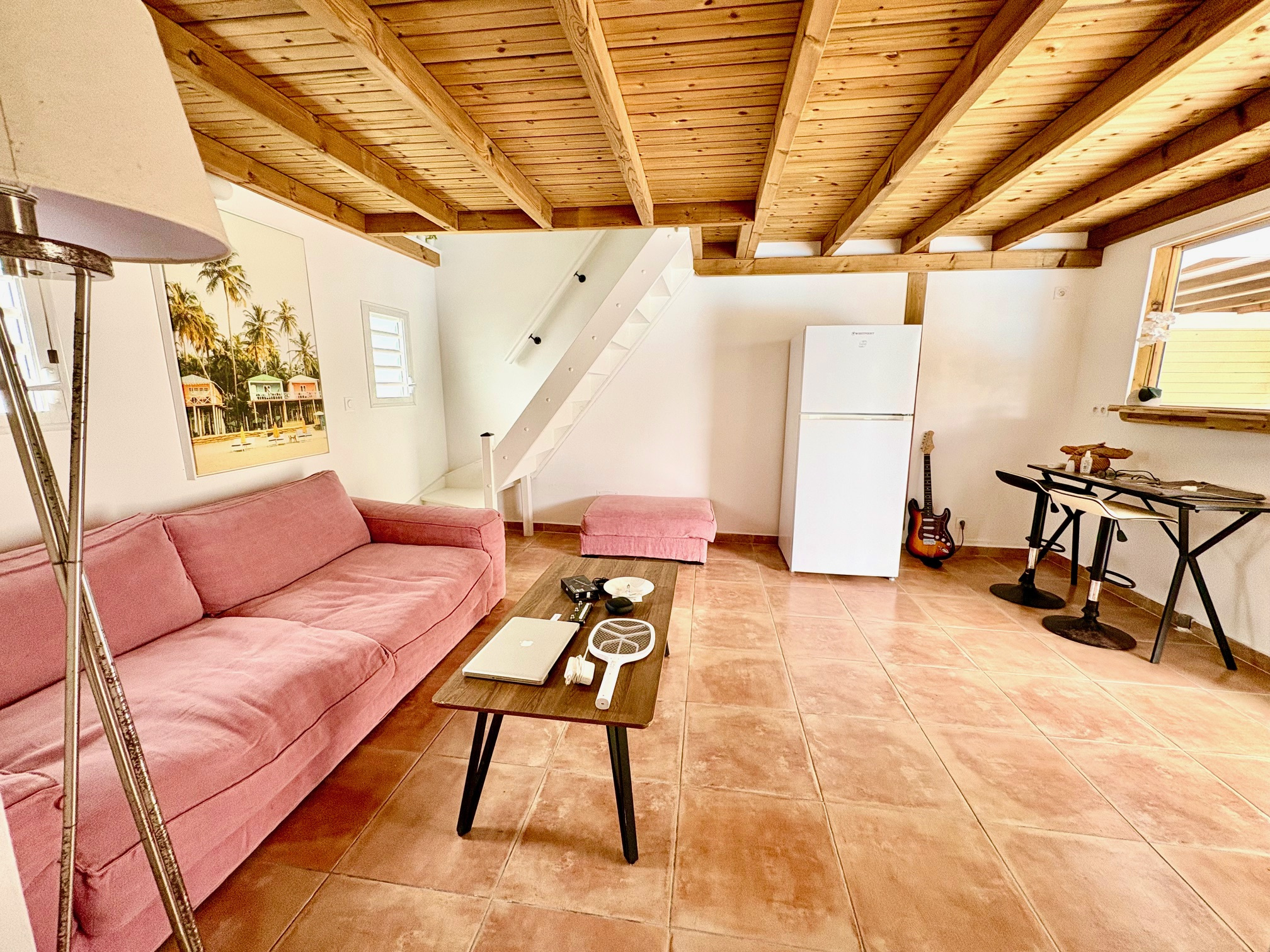 Maison F3/4 meublée et équipée d'une surface totale d'env. 119 m2 (terrasse comprise), nichée dans 1 petit jardin tropical intimiste à seulement 2 km de la plage des Raisins Clairs et du collège. Composée de 1 salon, 2 chambres climatisées avec rangement, 1 salle d'eau, 1 WC séparé, 1 grande terrasse d'env. 55m2 avec cuisine US équipée et agencée, pièce convivale avec son coin repas et son salon extérieur, 1 pièce débarras/buanderie d'env. 16m2, 1 piscine, 1 citerne bac tampon, 1 CE solaire. Jardin clos d'env. 270 m2. Place de parking. Idéal pour un pied à terre en Guadeloupe ou pour revenus locatifs touristiques et/ou longue durée. Pour plus d’informations contacter Laurence CAILLET par WHATSAPP et SMS au +590 690 002 312 ou par SMS au 0690 35 97 18 et par mail : laurence@immo971.com et/ou cailletlo971@gmail.com en laissant vos coordonnées et l'objet de votre appel.