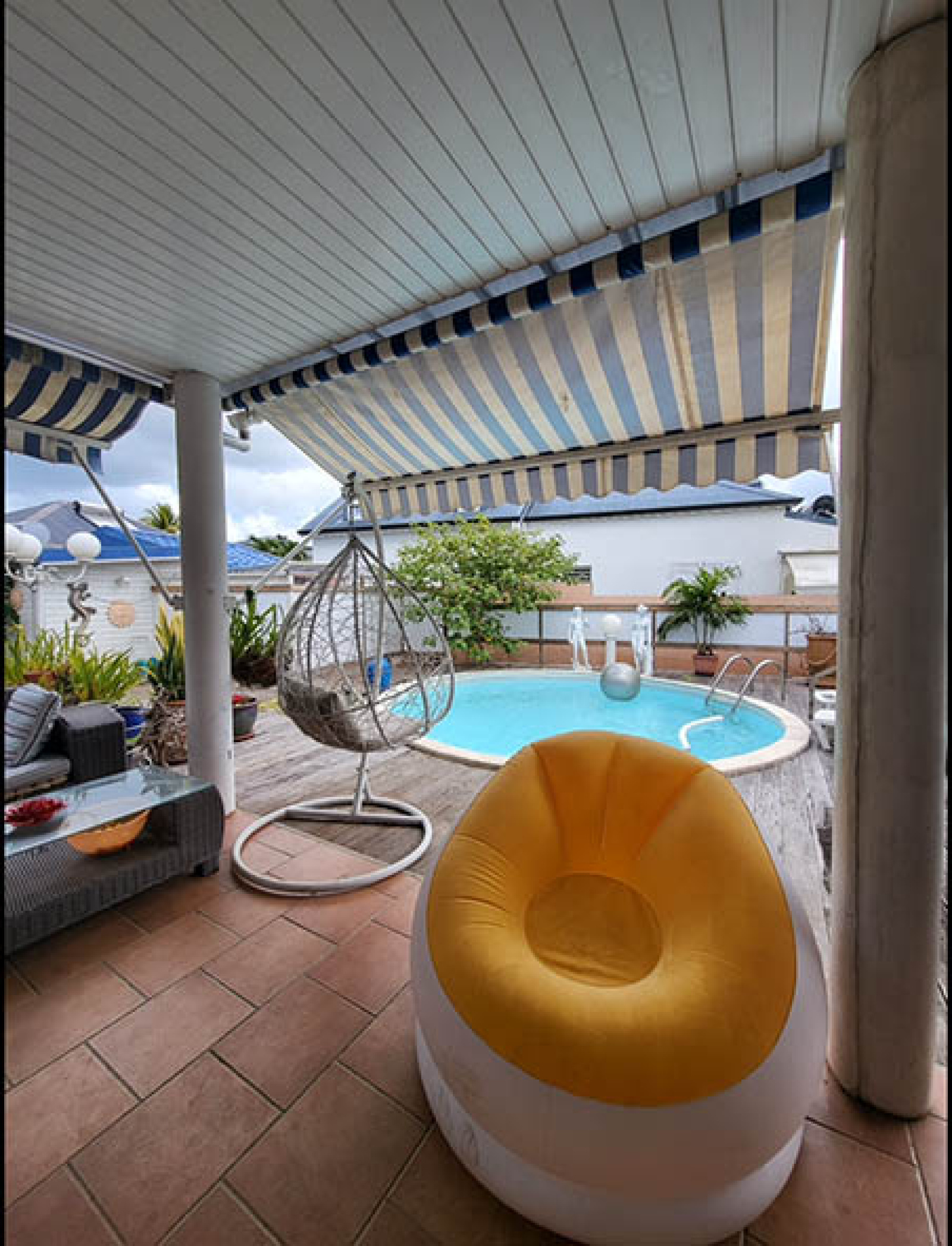 • VILLA T4 de 158 m2 avec petite vue mer et sa grande terrasse donnant sur le jardin et la piscine. Vendue non meublée / liste mobilière si intéressé. + 4 LOTS VENDUS MEUBLES : T2 1er étage 45 m2 / loué 840€ TTC avec sa terrasse et petite vue mer • T2 50 m2 / loué 780€ TTC attenant à la villa / vue jardin • Bungalow T2 40 m2 / loué 750€ TTC, sans vis-à-vis • T3 65 m2 / loué 1.100€ TTC, en Rez-de-Jardin clôturé.